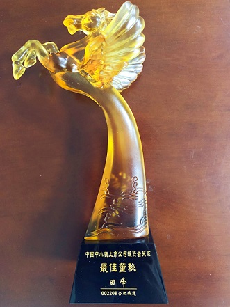 公司董事会秘书田峰同志被评选为中国中小板上市公司投资者关系最佳董秘。在目前A 股958家中小板上市公司中,仅有50家上市公司董秘获此殊荣。