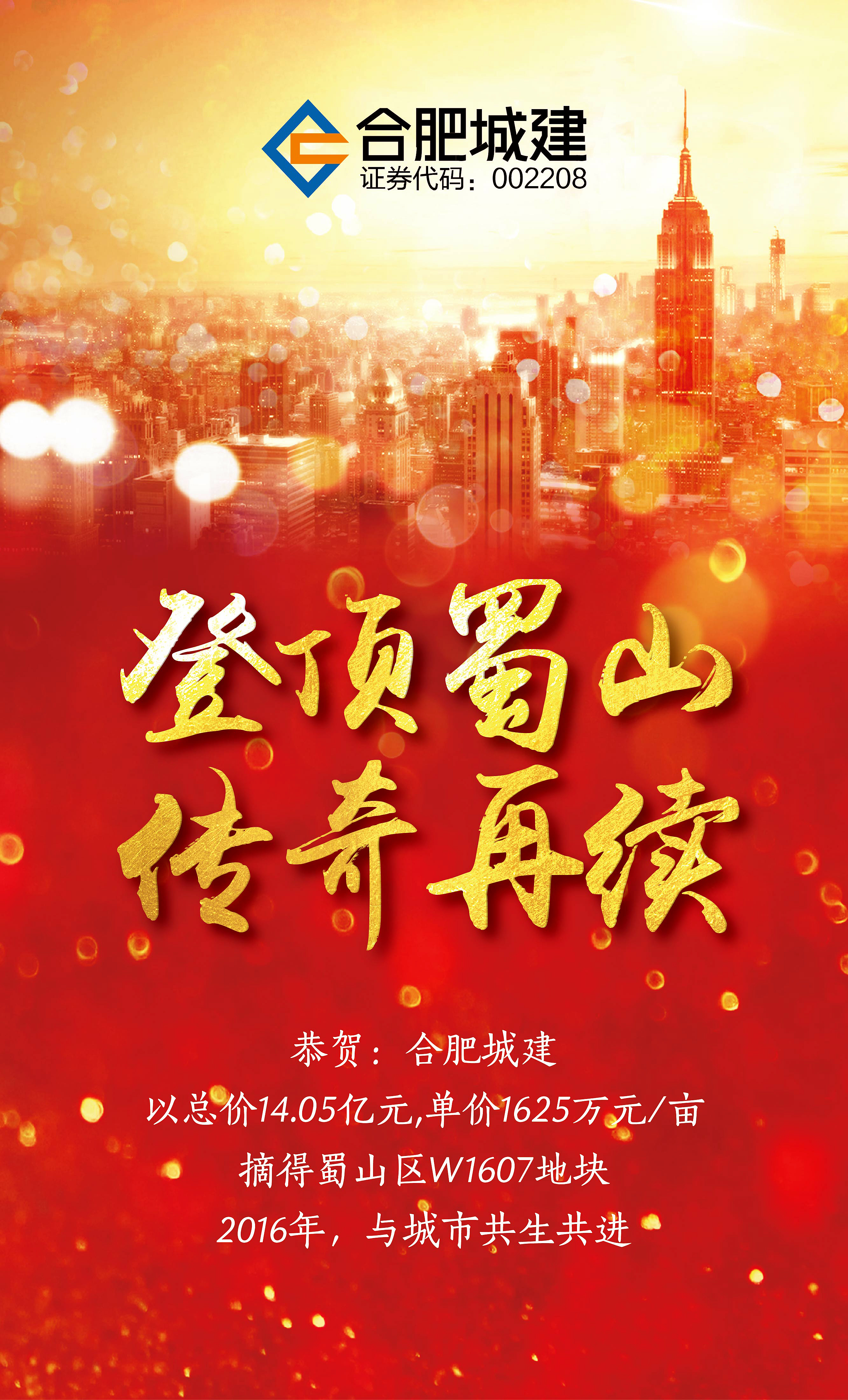 捷报:赢家娱乐城 登顶蜀山 传奇再续 2016年11月30日下午,合肥市区地块首次全面“限价”土拍,超90家房企群雄逐鹿,赢家娱乐城 再度发力,最终以成交单价1625万元/亩,总价14.05亿元,成功竞得蜀山区W1607地块。是赢家娱乐城 布局未来版图的又一重大举措。 该地块占地面积86.44亩,东边紧邻西二环,北边紧邻樊洼路,西...